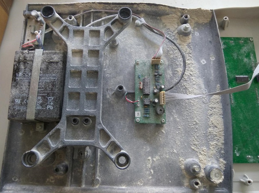 Bei der Waage der folgenden Rücksendung handelt es sich um ein NICHT geschütztes Modell der Baureihe PLC und befand sich für etwa ein Jahr im Einsatz einer Bäckerei, bis die Ablagerungen auf den Platinen einen Kurzschluss verursachten. Zusätzlich entsteht durch die bei einer normalen Reinigung nicht erreichbaren Rückstände ein Nährboden für ggf. schädliche Mikroorganismen.