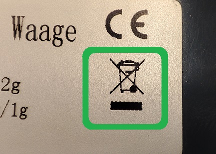 Das Symbol der „durchgestrichenen Mülltonne“ finden Sie auf unseren Elektrogeräten und Batterien (auf dem Foto grün markiert).