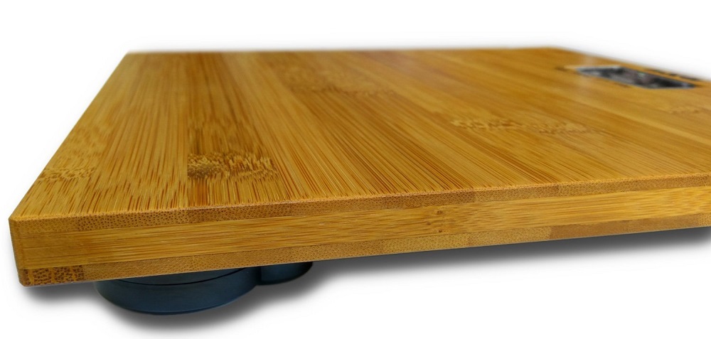 Die Wägefläche ist aus mehreren Schichten Bambusfasern gefertigt. Neben dem sehr leichten Eigengewicht und der natürlichen Faserung, die jede Waage zu einem Unikat macht, besitzt Bambus eine weitere, sehr wichtige Eigenschaft, besonders im Vergleich zu anderen natürlichen Rohstoffen: