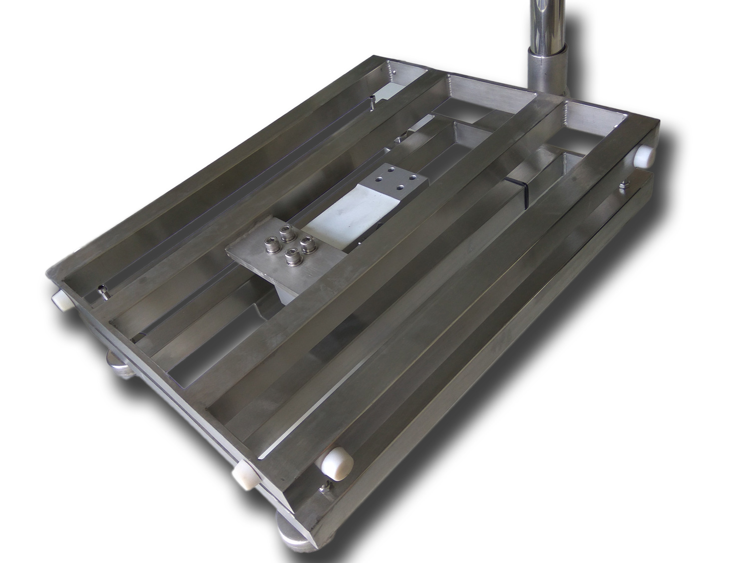 Die große TC-KSB besitzt eine Plattform aus geschweißtem Edelstahl. In der Mitte sitzt die wasserdichte Plattform-Wägezelle aus einer speziellen möglichst korrosionsresistenten Aluminiumlegierung.